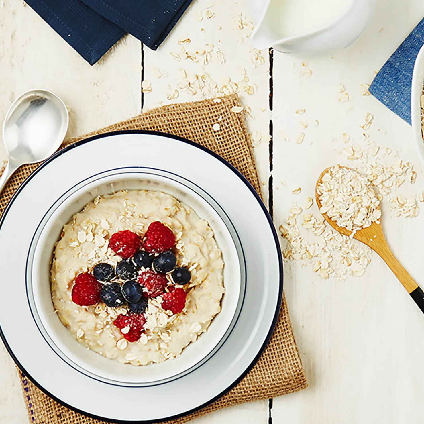 Unsere 100 % reinen Haferflocken sind ein ausgezeichnetes Frühstück – sie sind reich an komplexen Kohlenhydraten und Ballaststoffen und ideal, um die Muskelerholung nach dem Training zu unterstützen.2