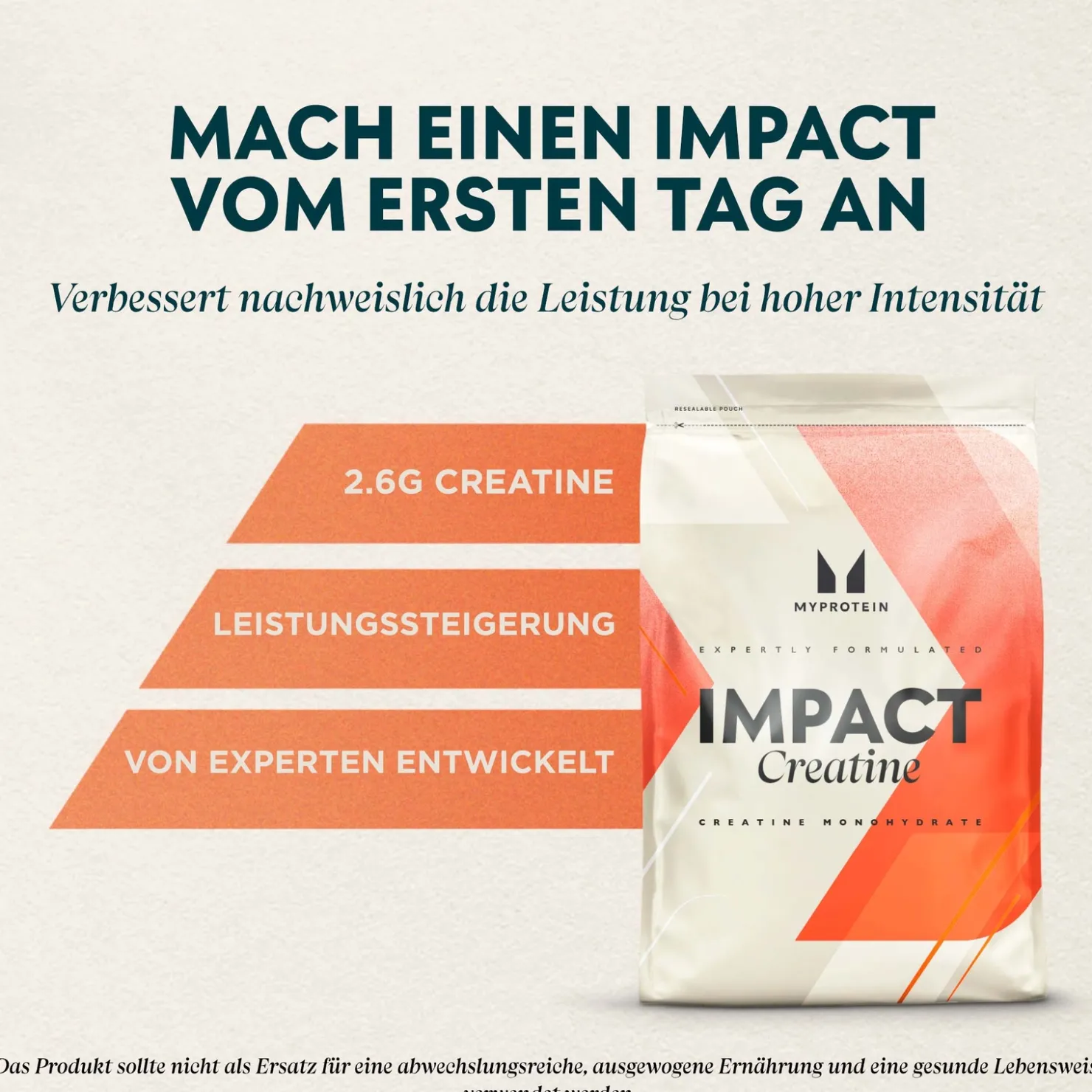 Unser Kreatinpulver gibt dir den nötigen Leistungsschub,1 um deine persönlichen Grenzen zu überwinden. Um jedoch sicherzustellen, dass du auch deinen täglichen Bedarf an Protein deckst, solltest du noch das Impact Whey Protein hinzufügen − das meistverkaufte Molkeprotein in Großbritannien.