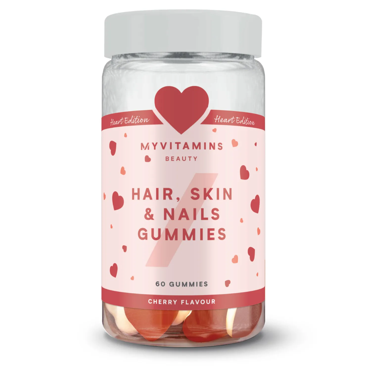 Hair, Skin & Nails Fruchtgummis sind ein leckerer kleiner Beauty-Boost. Die Fruchtgummis in Herzform haben einen köstlichen Kirschgeschmack und bestehen aus einer leckeren Geleeschicht auf der Oberseite und einem luftigen Schaum auf der Unterseite.